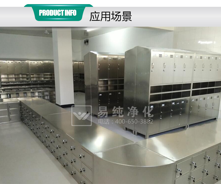不銹鋼鞋柜(不銹鋼更鞋凳)是凈化車間標配產品,采用SUS304不銹鋼制作,表面拉絲處理;通常形式有雙面單層交叉S形鞋柜,雙面雙層樣式以及雙面或單面多層多格樣式;具體可根據客戶要求制作;
