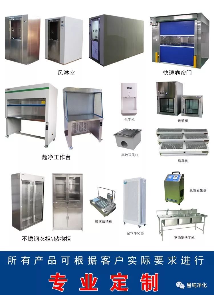 無錫易純凈化設備有限公司(下屬工程公司:無錫蘇之凈工程安裝有限公司)是專業從事凈化設備研發、生產及潔凈工程設計、安裝為一體的綜合型凈化公司,公司擁有。主營產品為風淋室、貨淋室、潔凈工作臺、傳遞窗等凈化設備,承接百級至十萬級(Class100-10000)凈化車間設計與安裝服務。