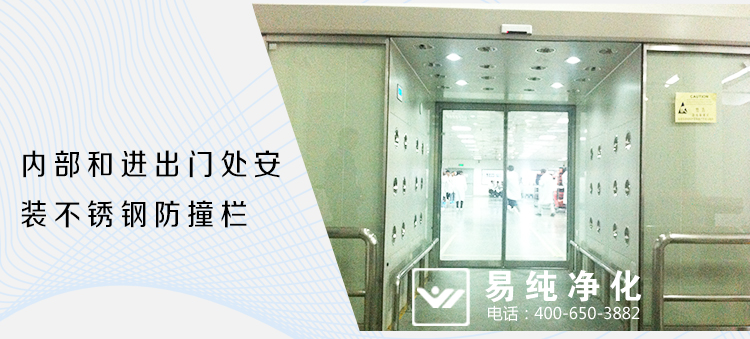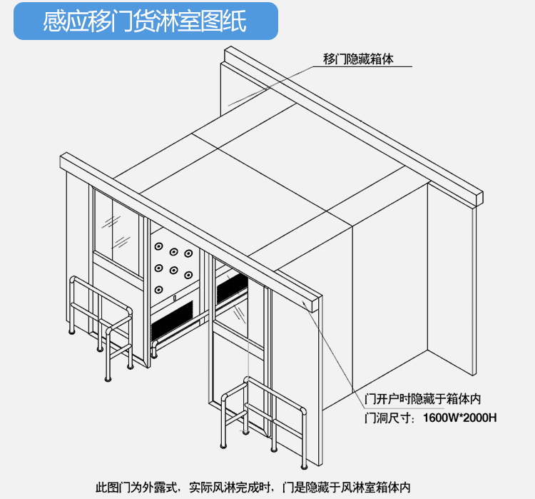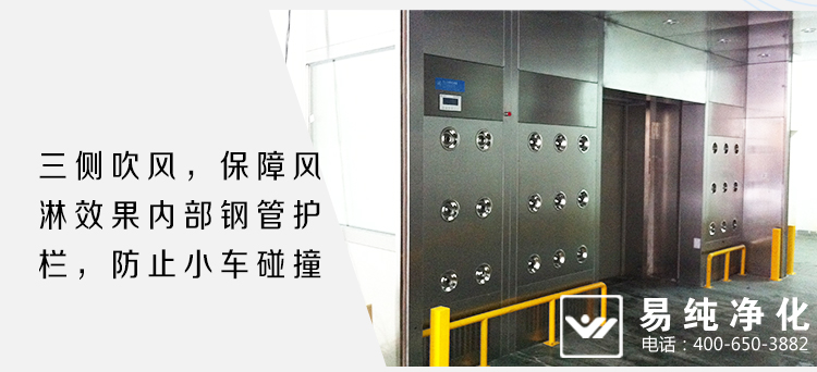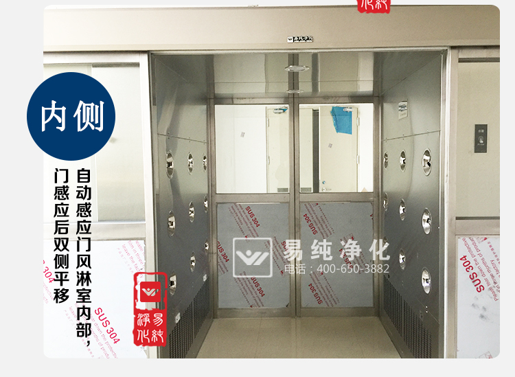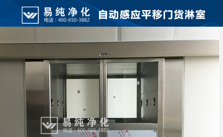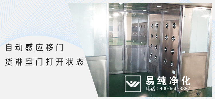 自動感應(yīng)門貨淋室,由雙樘自動感應(yīng)門和風(fēng)淋室箱體組成,雙門為自動感應(yīng)型開啟和自動關(guān)閉,雙門在吹淋過程中聯(lián)鎖,無法同時打開,將進入車間物流表面的灰塵和浮埃吹落。